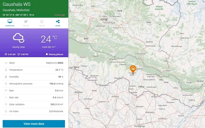 आकस्मिक रूपमा हुने गरेको जलवायु परिवर्तनबाट हुने मानवीय तथा भौतिक क्षति न्यूनीकरण गर्न तथा विपद व्यवस्थापनमा समयमै आवश्यक तयारी गर्न समेत सहज हुने अपेक्षाका साथ गौशाला नगरपालिका कार्यालयमा आफ्नै Weather Station जडान गरिएको नगरपालिकाले जनाएको छ ।