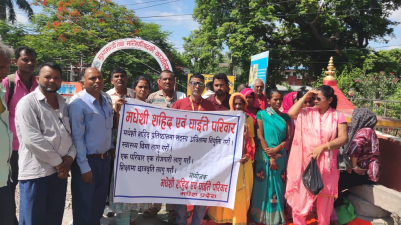 मधेशी सहिद एंव घाइते परिवार मधेश प्रदेशले बिभिन्न माग राखदै मुख्य मन्त्री गेट अगाडी धर्नाय