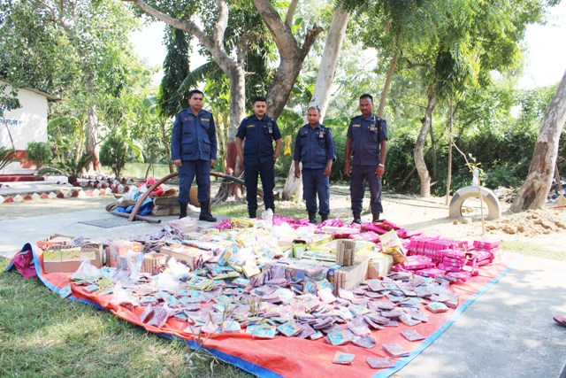 सिरहा प्रहरी द्वारा १५ लाखको पटाका जन्य पदार्थ नष्ट