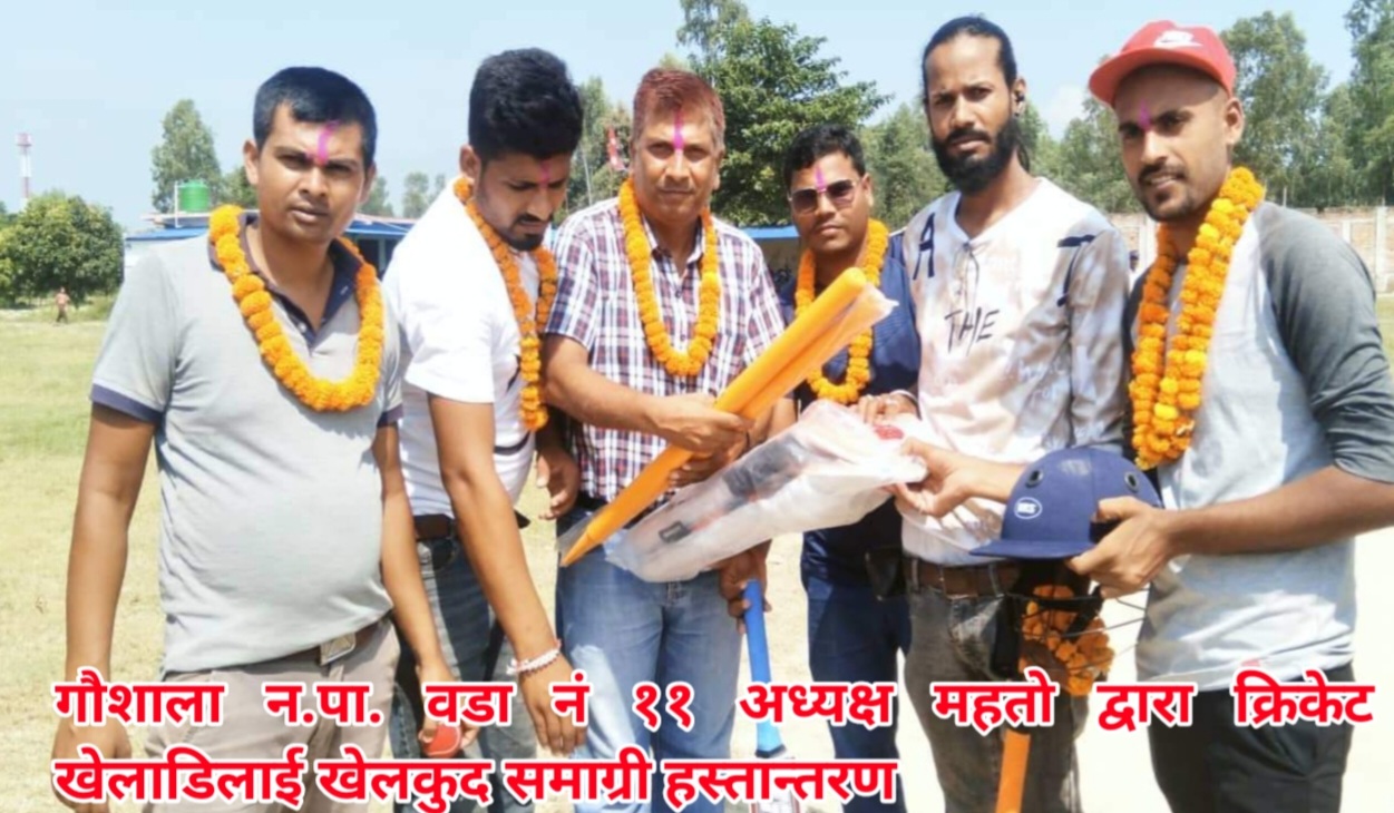 गौशाला न.पा. वडा नं ११ अध्यक्ष महताे द्वारा क्रिकेट खेलाडिलाई खेलकुद समाग्री हस्तान्तरण